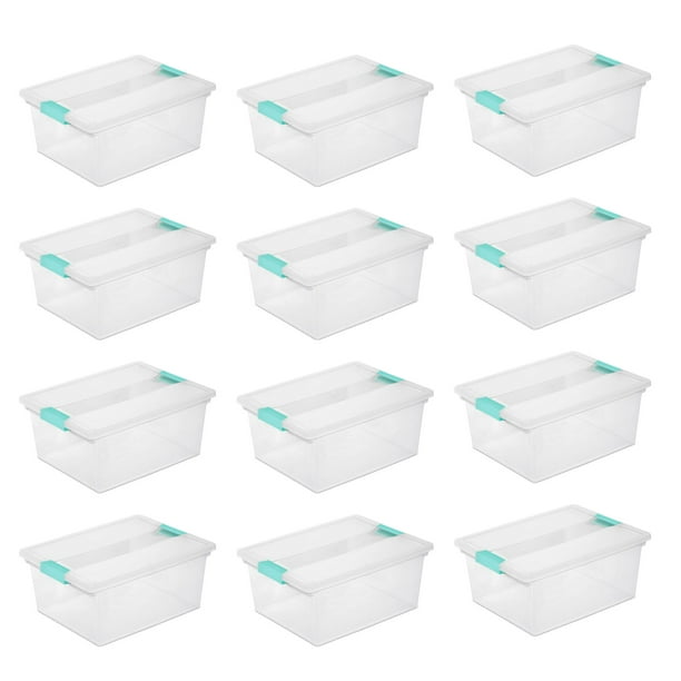 Sterilite Deep Clear Plastic Storage Bin W Clear Lid Aqua Latch 12 Pack Walmart Com